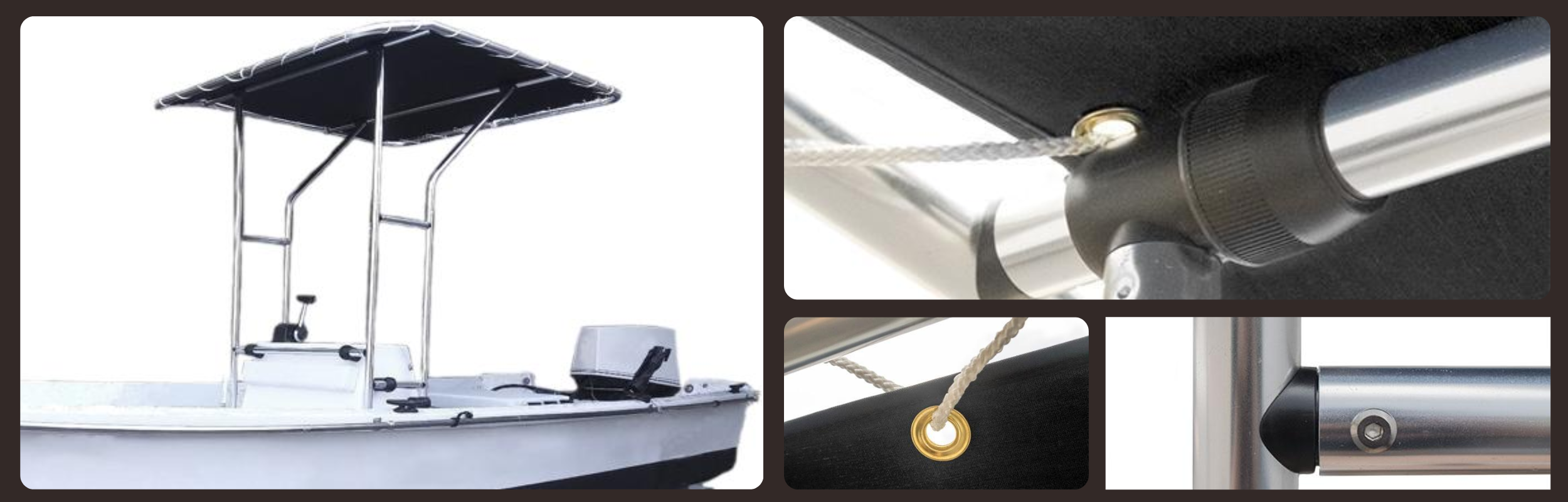 • Upgrade your bimini mounting kit with stainless steel saddles.