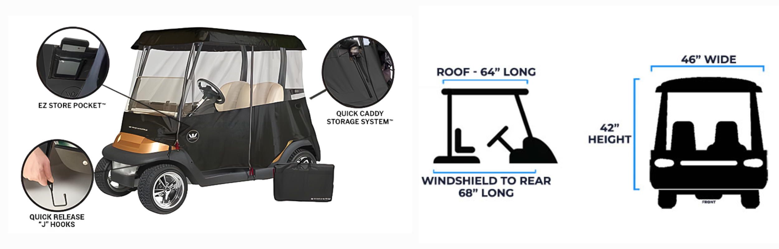 - Removable windshield – recommended to remove if your cart has a windshield